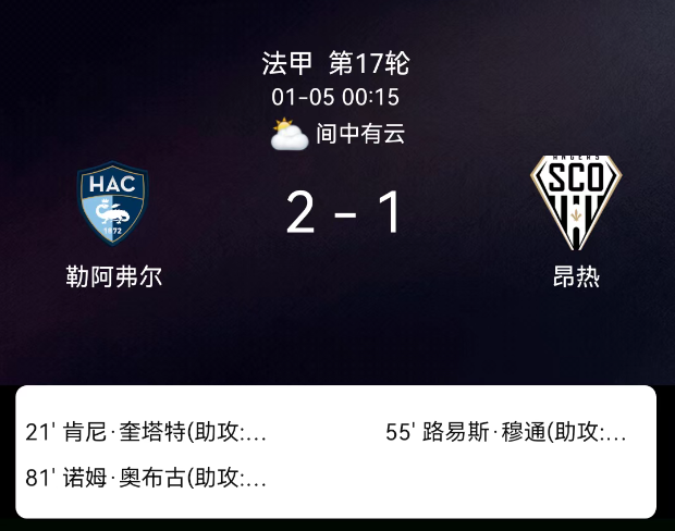 08-24 | 法甲第17轮阿若克建功肖塔尔锁定胜局布雷斯特20欧塞尔